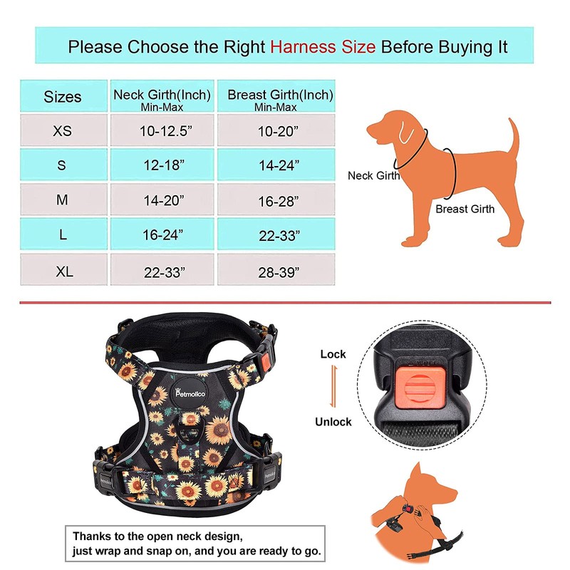 Petmolico No Pull Dog Harness Set, 2 Leash Attchment Easy Control Handle Reflective Vest Dog Harness Large Breed, Large Dogs Harness and Leash Set with Poop Bag Holder, Large Sunflower