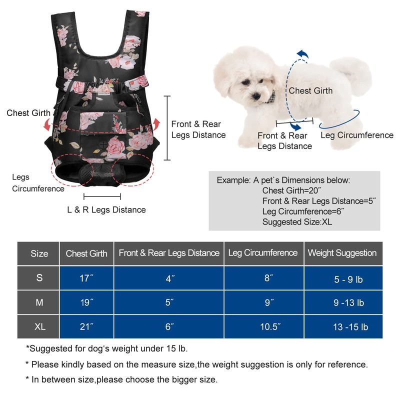 - [ Suitable for Small Cats and Dogs between 5LB to 9LB] Petmolico pets carrier backpack is designed for carrying small dogs and cats less than 9Lb. Better for short legs dogs, like Chihuahua, Shih Tzu, Poodle, Cavachon, Cavalier King Charles Spaniel. You lovely puppy / kitten will love to be carried in this legs out front carrier backpack.