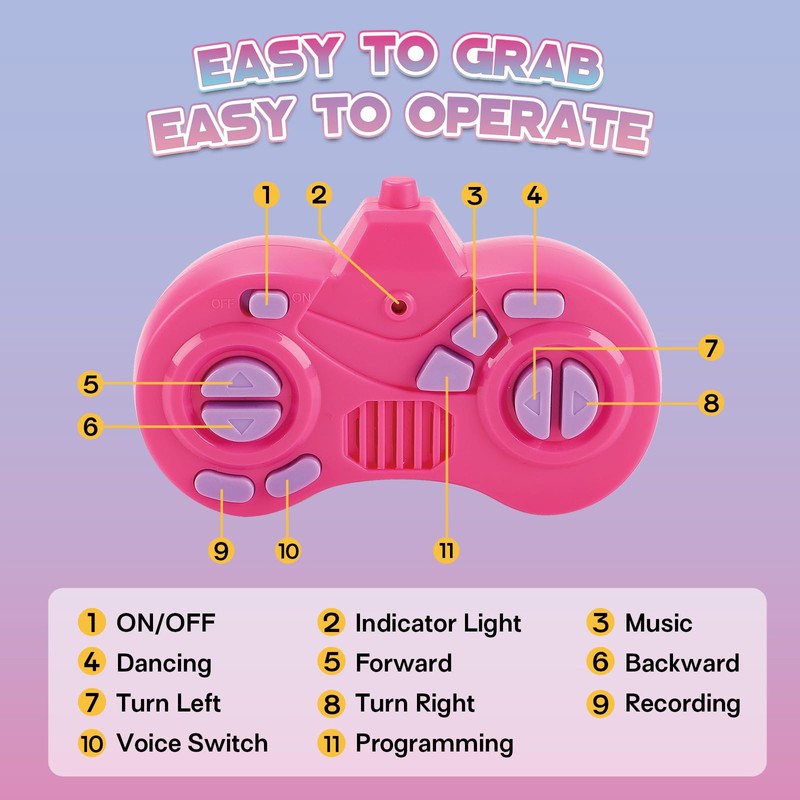 • Remote Control Robot pets Gifts for Girls : The Robot Pets toy is a fun remote control toy robot that can record and play your voice ,sings, dances to the beat, walks around the room, and more; a great companion toy for kids girls ages 3 and up
