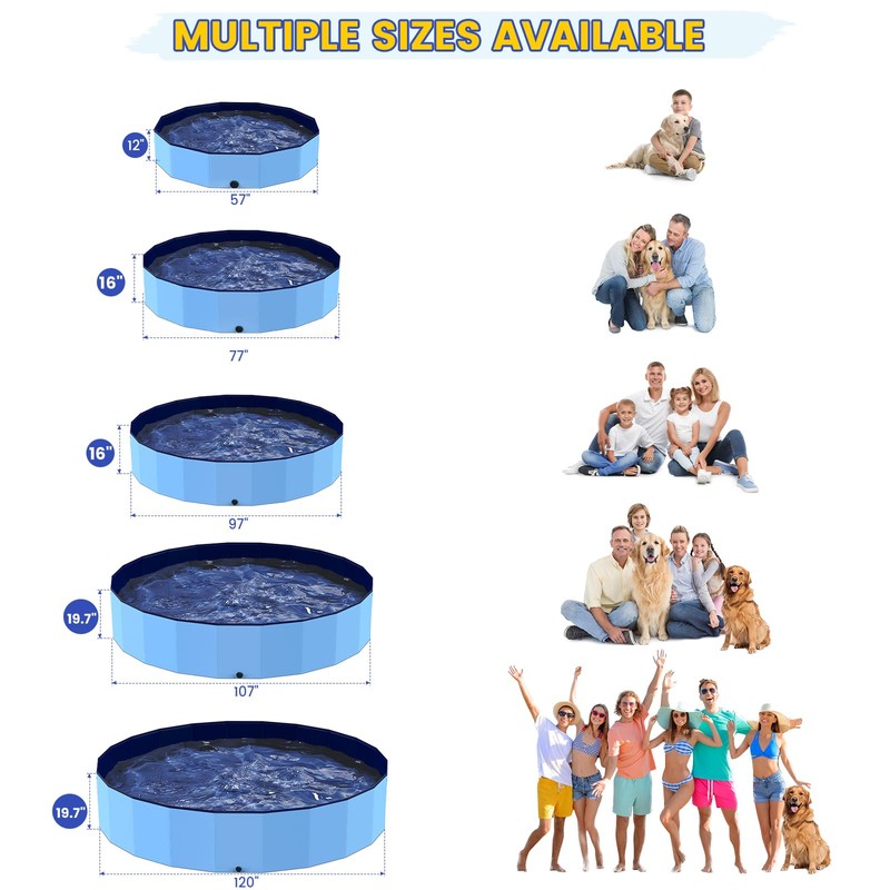 77 inch: Ideal for 2 kids and 1 dog to play together to cool down. Suitable for the next level from the kiddie wading pool to learning to float, kick and submerge head in the water.