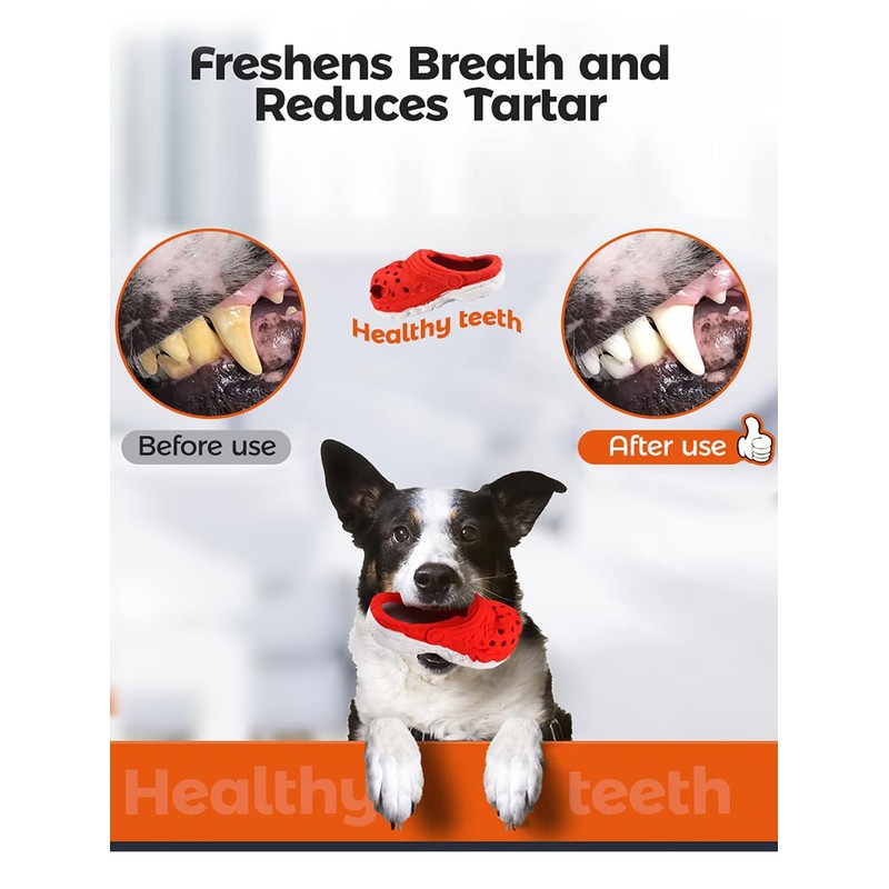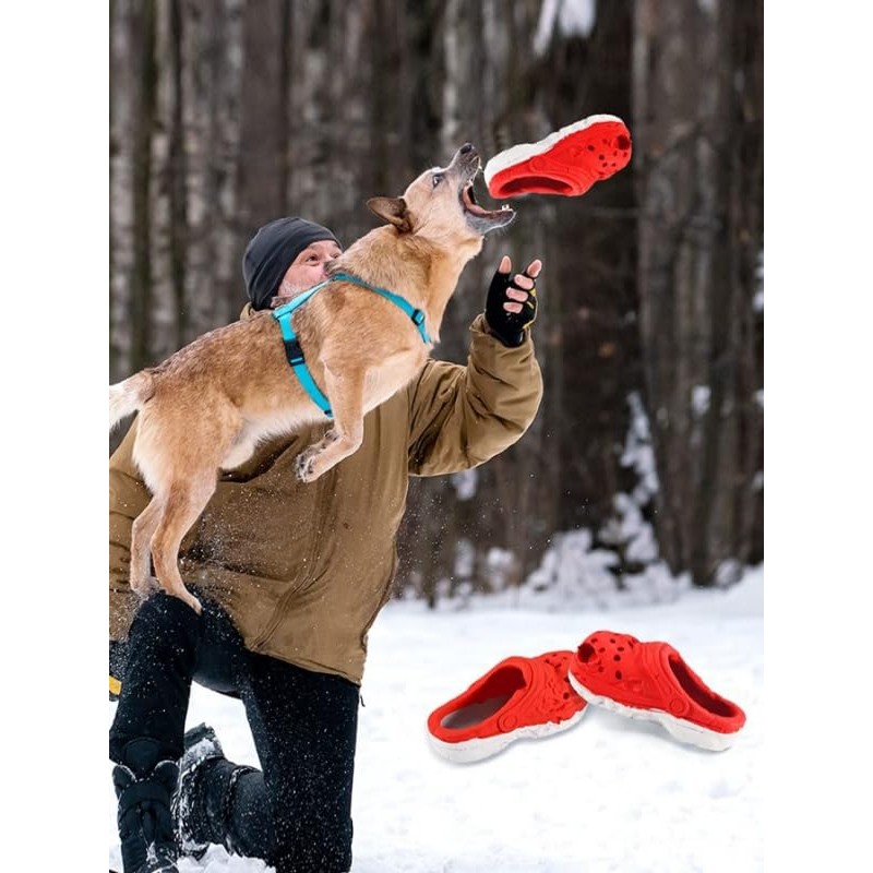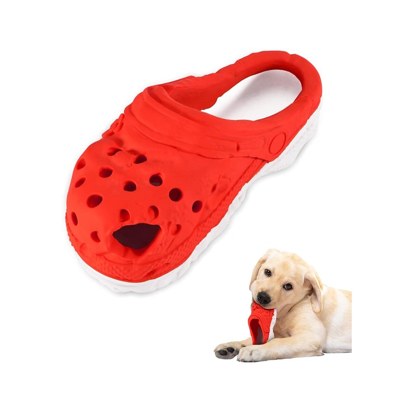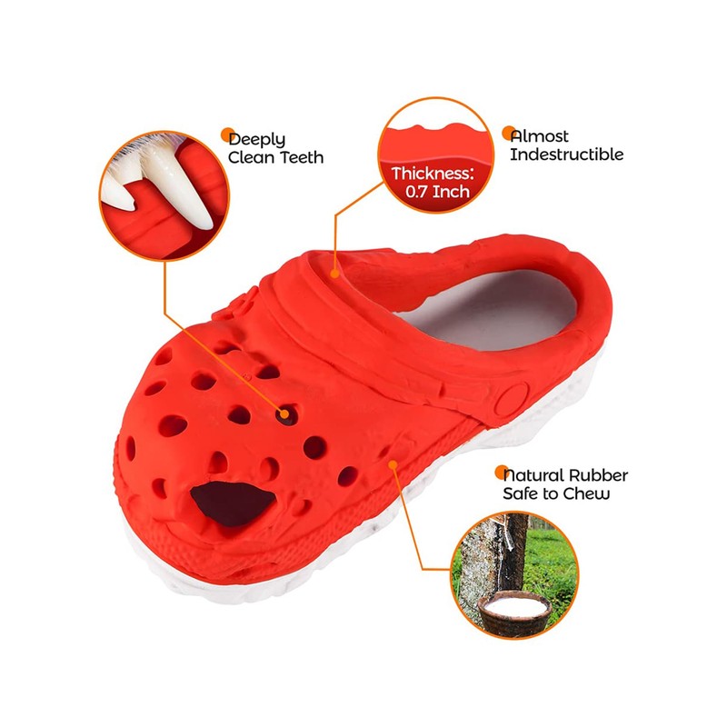 PETOPIA Dog Toys for Aggressive Chewers, Dog Chew Toys, Dog Toy for Large Dogs,Durable Dog Toy for Large Dogs, Food Dispensing Toy for Dogs, Soft Rubber Shoe for Dogs (Clog Shoes Dog Toys, Red)