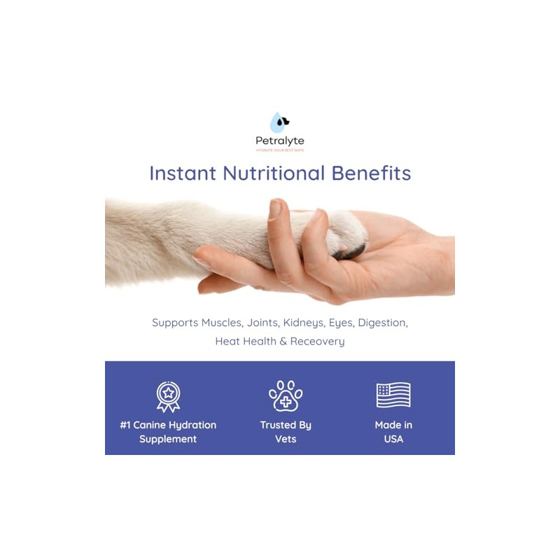 - Veterinary Formulated - Petralyte veterinary-certified nutrient and electrolyte for dogs supplement drastically improves the speed and efficiency of water absorption, helping dogs to stay active and healthy. Our Dog Hydration Supplement Contains Taurine, Glucosamine, MSM and much more!