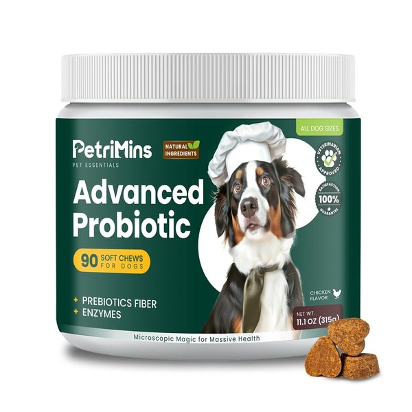 PetriMins PetriMins Advanced Probiotic for Dogs, Supports Digestive Health, Immune Health, Gut Health, Improves Nutrient Absorption - Six Strains of Probiotics - Inulin - Enzyme Blend, 90-Count, Chicken