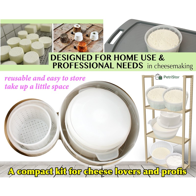 - ✅ Cheese molds for cheesemaking such hard and soft cheeses from cow, goat and sheep’s milk: Mozzarella, Maskrapone, Brie, Parmesan, Cambocola, Camembert, Gorgonzola, Tete de Mouans, Roquefort, Bocconcini, Burrata, Grana Padano, Castelmagno, Cachotte, , Ricotta, Talejo, Beaufort, Valenza, Gouda, Maasdam, Mildziter, Manchego, Radamer, Suluguni, Cachotte, Parmesan, Parmigiano, Dor blu, etc.