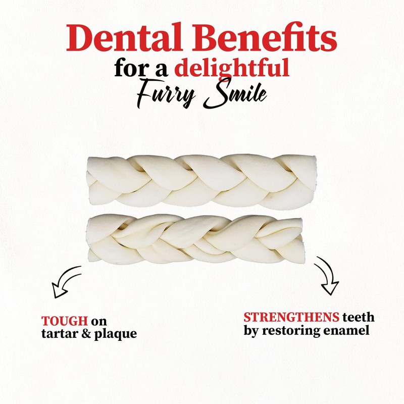 • Natural Flavor: The braided texture and natural rawhide flavor make these chews an enticing and flavorful option for dogs of all breeds and sizes.