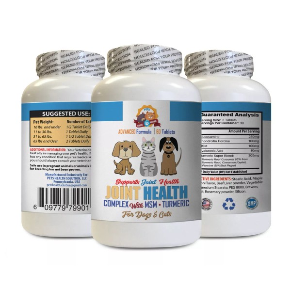 JOINT INGREDIENT COMPLEX FOR DOGS AND CATS: Does your pet need joint support? Are they a larger breed, medium or small breed? Our new joint health supplement with Turmeric is a great option for your pet’s overall joint health. In addition to the Turmeric, it is veterinarian formulated with Glucosamine, MSM, Chondroitin, and Antioxidants to support connective tissue, cartilage health, joint movement and lubrication of joints.