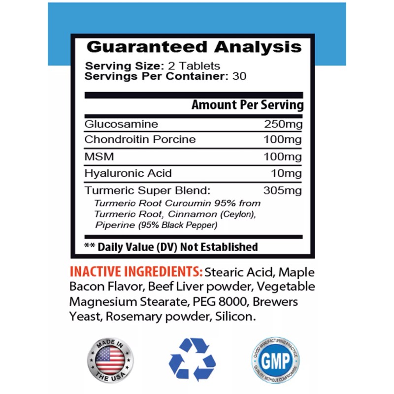 CHONDROITIN FOR PETS HIP AND JOINTS: Glucosamine is often paired with chondroitin in nutritional supplements. Chondroitin is another naturally occurring substance that can help stop damage to joints. As a supplement, chondroitin has been shown to reduce joint pain and aid in cartilage support. Glucosamine and chondroitin are each widely believed to enhance the other's benefits, which is why we included it in our supplement.
