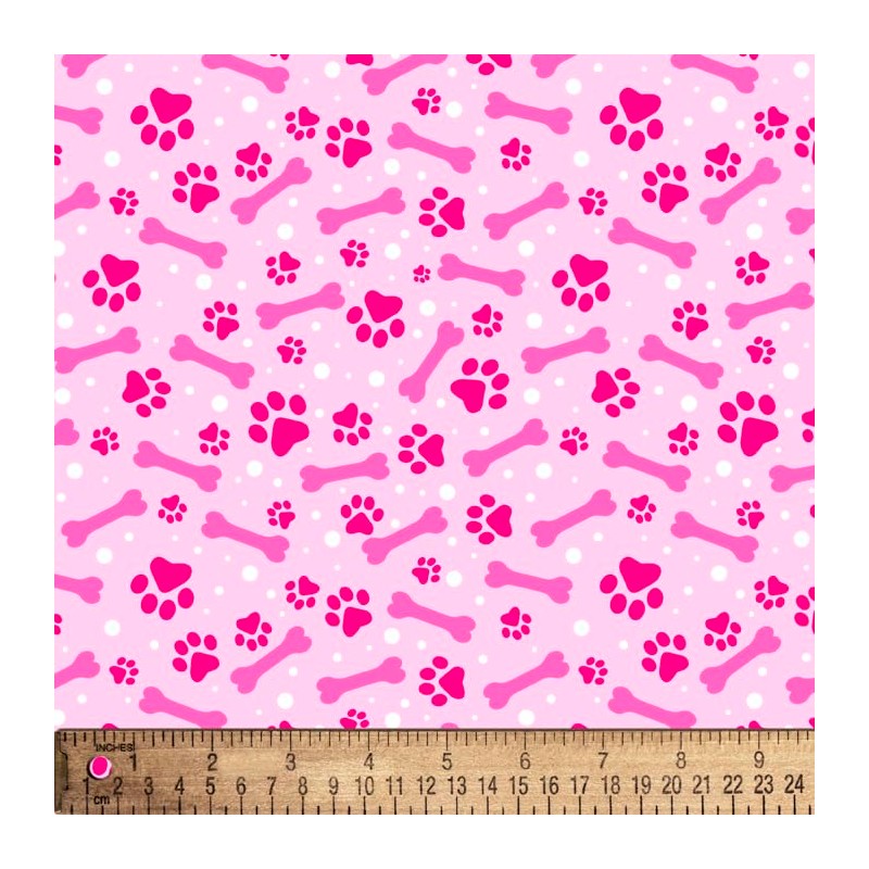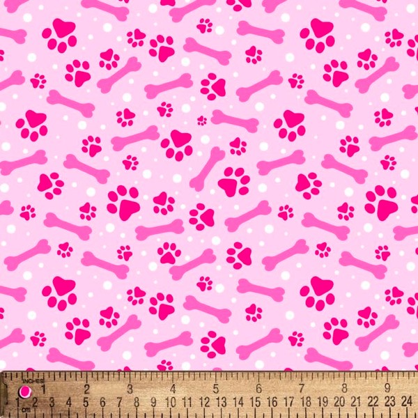 Pets Paw Prints and Dog Bones Pink Cotton Fabric by The Yard