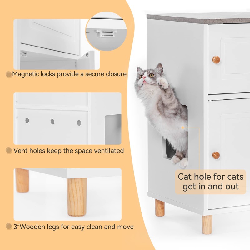Petsfit Litter Box Enclosure, Odor-Free Design, Storage Cabinet, Easy-Clean, and Stylish Hidden Litter Box Furniture White &Grey