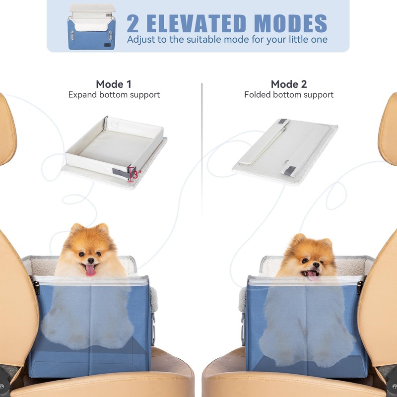 - [Multiple Usage Dog Booster Seat] The dog car seat comes with 2 elevated modes, you can adjust the suitable mode for your little one, and it can elevate your pet 3.15 inches high above the vehicle seat, offering a better view. The portable puppy car seat can also be used as a dog car bed or office bed.