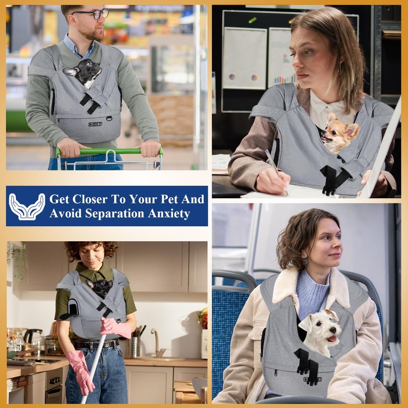 • SECURE PP BOTTOM FOR PET SUPPORT: Dog wrap carrier include a Bendable bottom mat(14.5"L x 5.5"W) that prevents your pet from falling into the carrier. Your pet can safely rest on your chest without slipping or sliding. It's good ideal for anxious animals, dog holder for chest is designed to ensure they feel comfortable and protected whether you're moving through crowds or climbing stairs.The Detachable mat is also machine washable for easier cleanup.