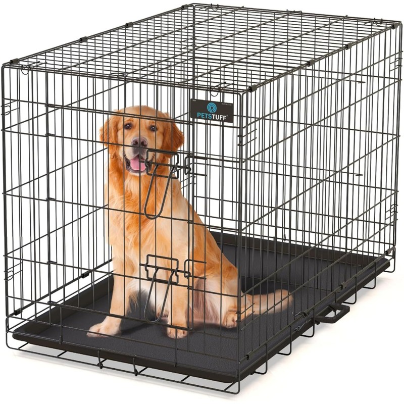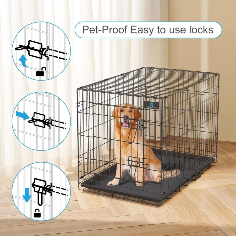 - BUILT TO LAST DOG KENNEL: Whether you're on the go or away from home, ensure your pet stays safe and secure! The PetsTuff heavy-duty dog crate is constructed with strong, bite- and claw-proof steel for ultimate durability. Featuring two doors for easy access, it offers flexibility for different spaces.