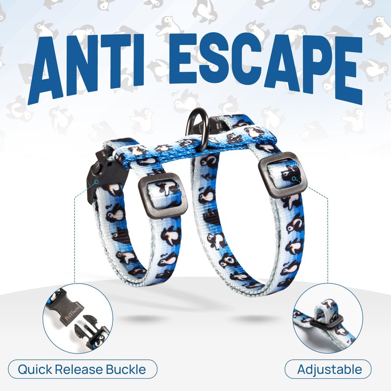 PetThem Cat Harness and Leash Set - Escape Proof Vest Harness for Cat, Comfortable Soft Lightweight, Easy Adjustable Cat Collar Harness for Small Medium Large Cats (Glacier Penguin)