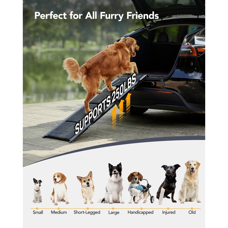 - Extra-Wide for a Safer Climb - We know a narrow ramp can make pups feel uneasy and unsafe. That’s why we listened to pet parents and upgraded our dog car ramp to a wider 19.7" for a safer, more comfortable climb. More space means more confidence for your furry friend, ensuring every trip starts with security and ease