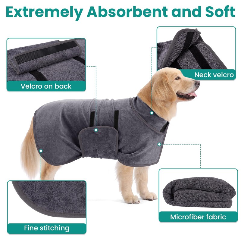 - Extra absorbent: dog bathrobe made of fine microfibre material is super absorbent, which makes drying after bathing efficient and comfortable for your pets.