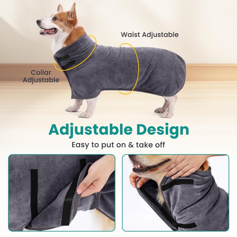 - Velcro design: with the practical Velcro design on the neck and stomach, dog bathrobe is easy to put on and take off. It adapts perfectly to your pet's body shape, regardless of size.