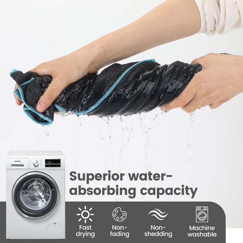 - SUPERIOR ABSORBENCY AND QUICK DRYING - These microfibre fiber towels can absorb up to 10 times their weight in liquid without retaining moisture. This allows them to dry faster and be more effective compared to other towels.