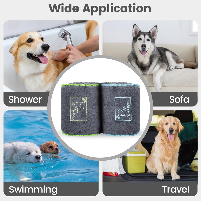 - PACK OF TWO - The dog towel set includes two pieces, a towel for absorbing water and a towel for drying. They are very practical and convenient.