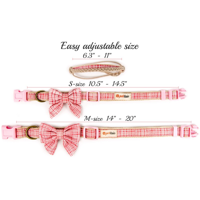 Pettsie Dog Collar Bow Tie & Owner Friendship Bracelet, Adjustable Size Small & Medium, Durable, Soft, Pet-Friendly Hemp with Fancy Cotton Pattern, Strong D-Ring for Easy Leash Attachment