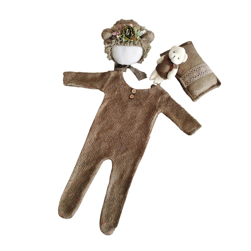 Petyoung Newborn Photography Props - Jumpsuit Hat Pillow Bear Toy Set,Photo Props Outfit for Photography Studio Background