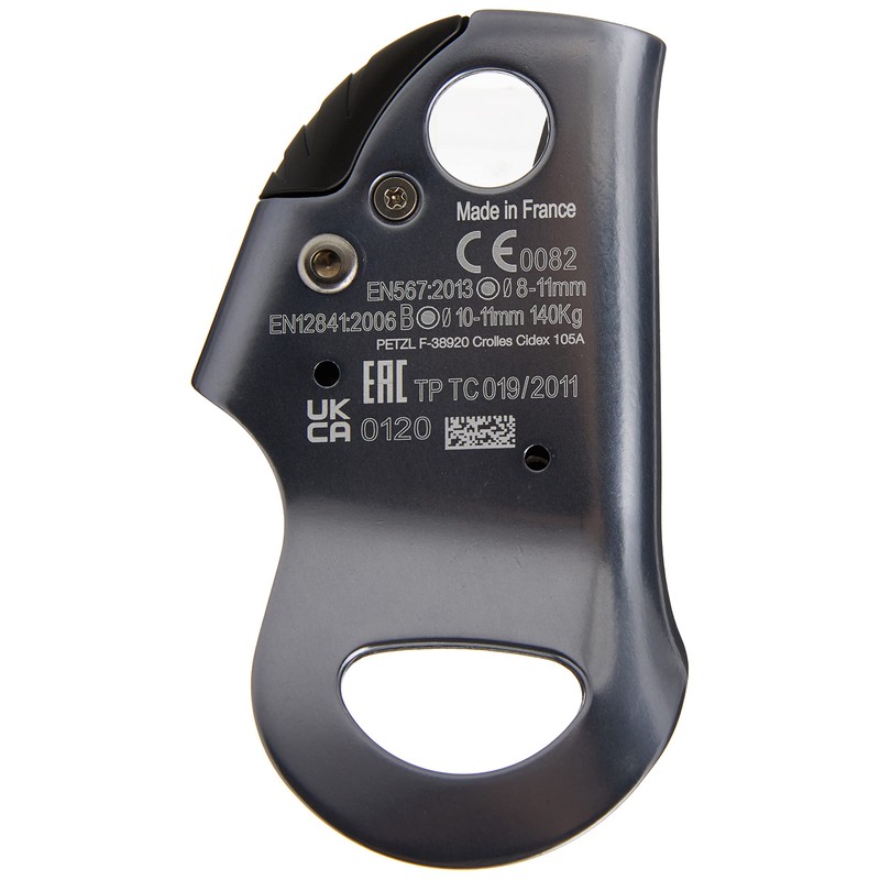 ホーリングシステム、ロープクライミング時に握りやすいコンパクトなアッセンダーです。大きなロワーホールにはランヤードとフットループのカラビナをクリップできます。
