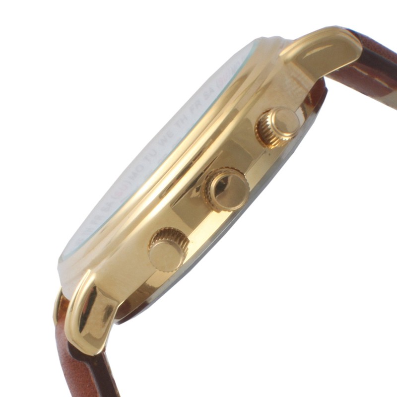 - White easy to read dial has 3 sub-dial indicating day of the week, date and decorative sun-moon phase.