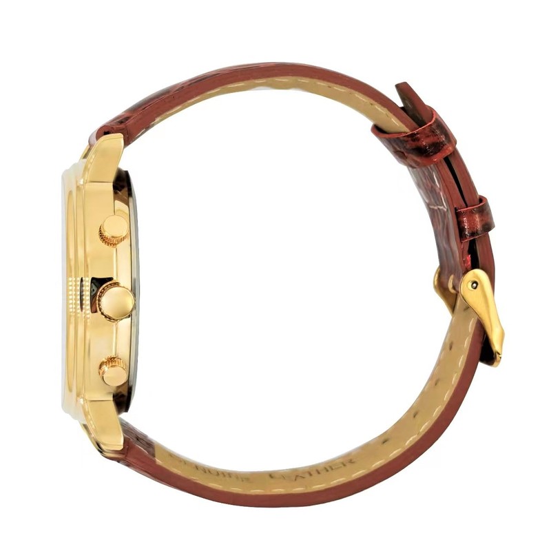 - Rich brown genuine leather band is adjustable to fit wrists size from 6" to 8".