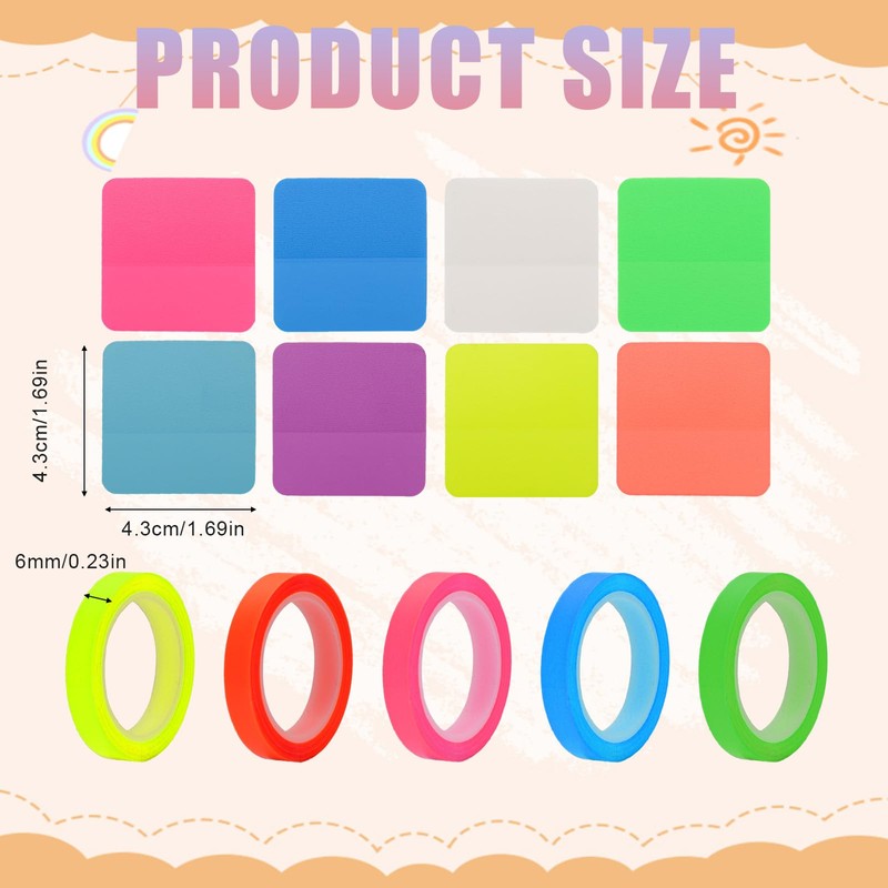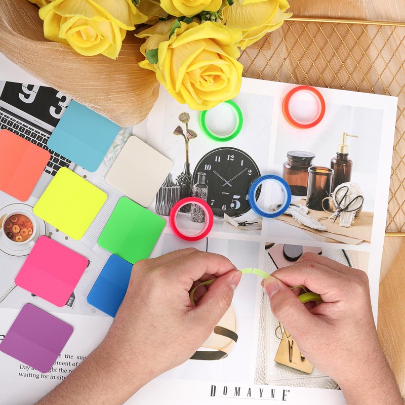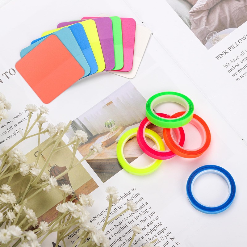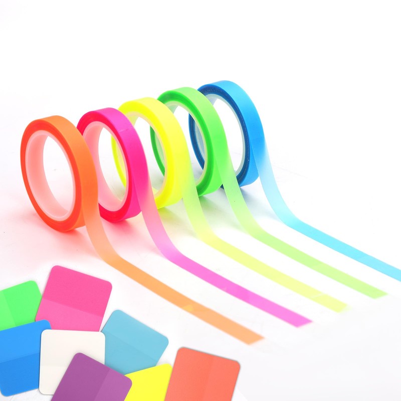 - Package contents: you will receive 5 rolls of fluorescent highlighter tapes and 8 coloured transparent sticky notes in 8 colors.A sufficient quantity can meet your daily needs.