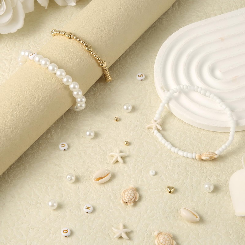 - Product Content: You will receive the beach bracelet making kit, including conch, turtle, letter, heart-shaped white and gold beads and crystal wire, about 1000 pieces. The quantity is enough to meet your bracelet making.