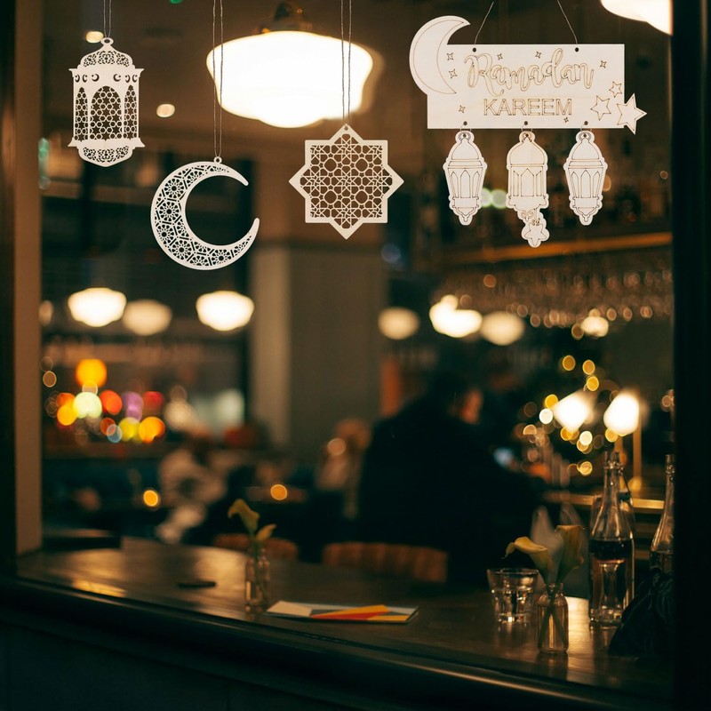 - Package Content: You will receive 8 pieces of ramadan kareem wooden ornaments in 4 designs and 8 strings. They are full of festival atmosphere. They'll meet your decoration needs on eid al fitr.
