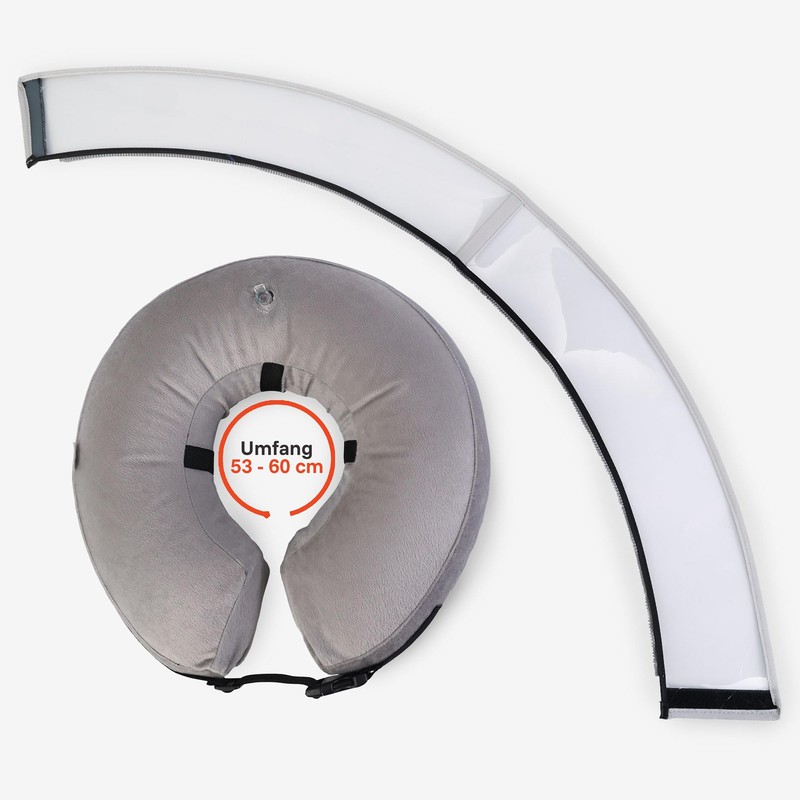 The inflatable collar for dogs provides optimal protection after surgery or skin irritation. It prevents your dog from licking or scratching wounds or seams without restricting their vision or freedom of movement. Thanks to the soft, removable and machine washable cover, the protective collar always remains hygienically clean.