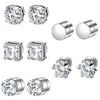 PEVRUAY Magnetic Earrings Men & Women, 5 Pairs 6 mm, Silver, Stainless Steel & Zirconia, Non-Pierced, Magnetic, 316L Stud Earrings