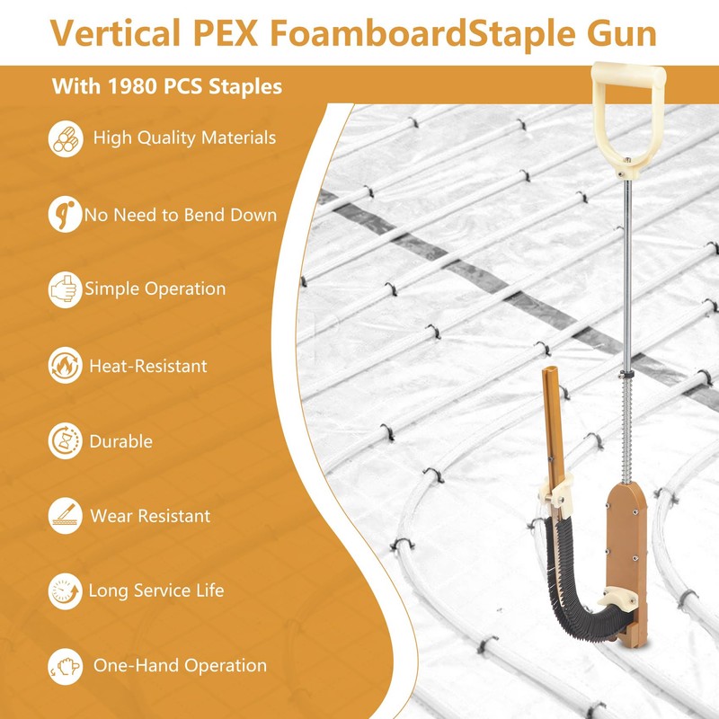 - This PEX foam board staple gun is an ideal choice to firmly fix the PEX tube on the foam plate.