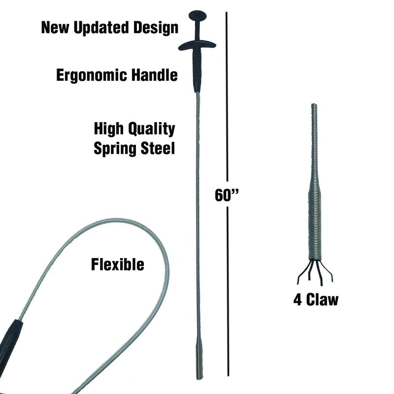- FLEXIBLE DESIGN - 60" length helps access hard to reach spaces to pickup dropped items or remove clog/debris from sink, tub. Shower drains