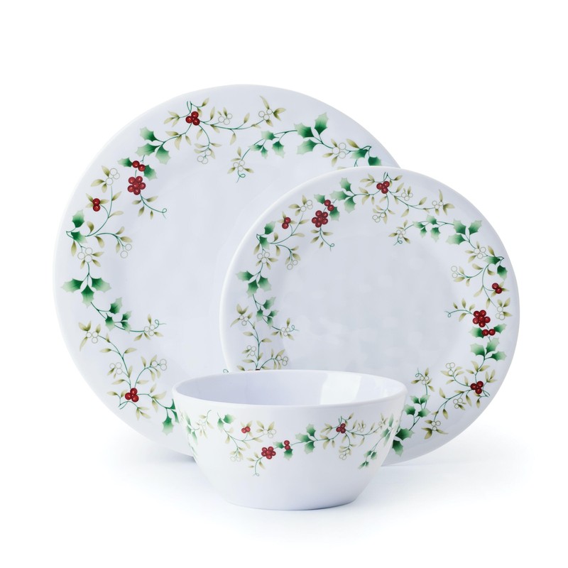 - HOLIDAY DINNERWARE: adorned with a delicate red and green garland, each piece in the Winterberry collection brings a festive look to your table setting