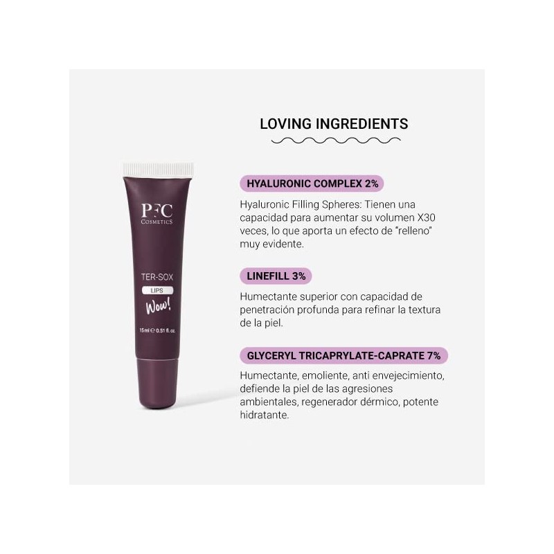 PFC Lip Volumiser Ter Sox Wow Lips 15 ml Talking Balm with Olive Oil Glyceryl Tricaprylate Linefill® Ginseng® and Hyaluronic Filling Balls® for Body Care and Lips