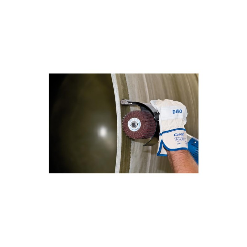 - Additional fabric: the abrasive fleece is arranged radially in lamellar shape – thanks to the additional sanding fabric between the slats a higher material removal and a coarser sanding pattern is achieved
