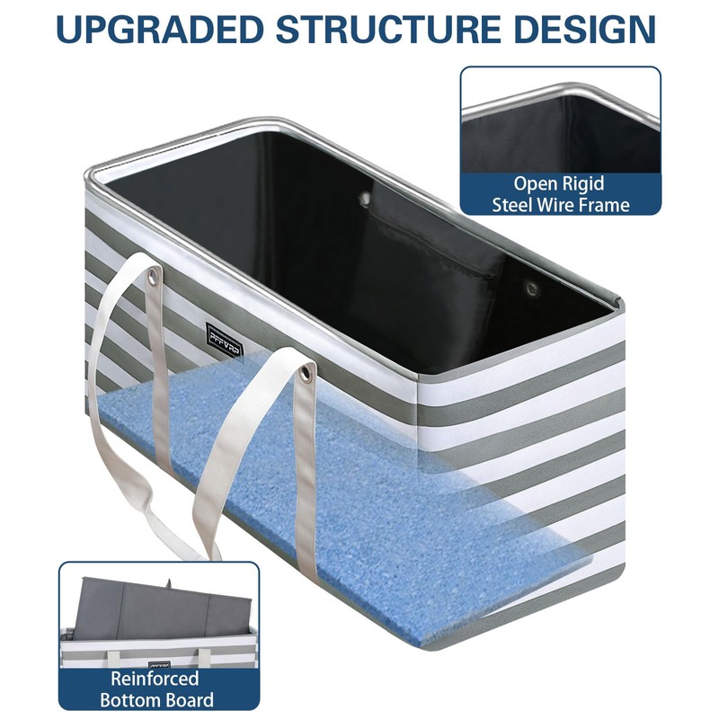 PFFVRP Stand Up Extra Large Utility Tote Bag 2-Pack, Foldable Reusable Grocery Bags with Metal Wire Frame & Reinforced Bottom Board, Large Utility Tote for Grocery Stores, Storage, Shopping (Grey)