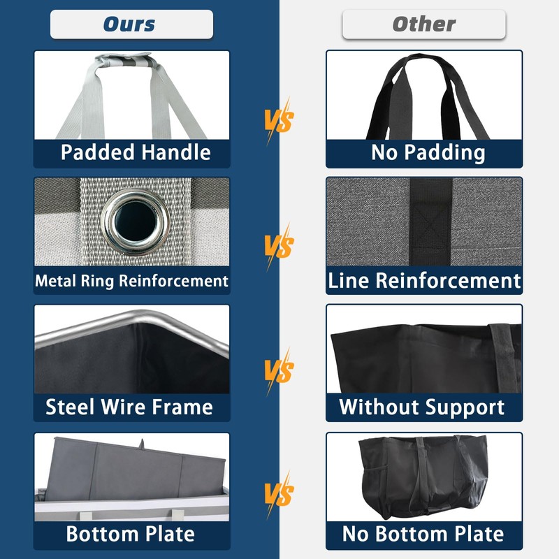 - STAND UP REUSABLE GROCERY BAGS:The utility tote is ingeniously designed with a metal wire frame at the top opening, ensuring it remains open at all times. Pulling the utility tote bag out, it effortlessly stands on its own and maintains an upright position for an extended period. The bottom is thoughtfully crafted with a foldable bottom panel, preventing deformation even when loaded with items.