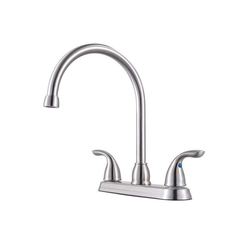 Pfister Pfirst Series Kitchen Sink Faucet, 2-Handle, High Arc, 3-Hole, Stainless Steel Finish, G136200S