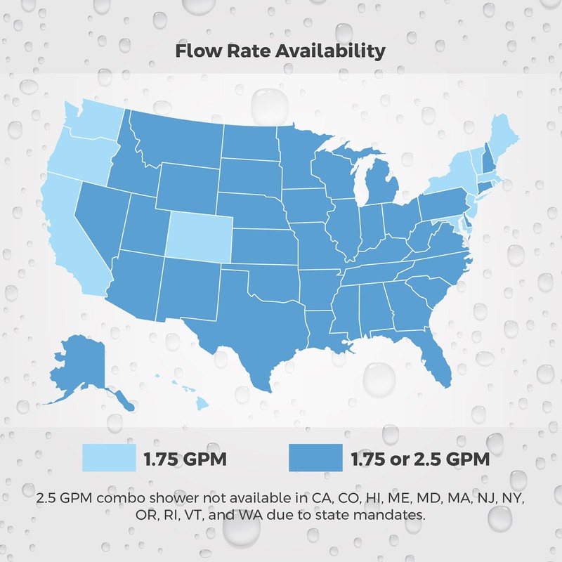 - 2.5 GPM FLOW RATE – Water flows at 2.5 gallons per minute, ensuring a robust, reliable, and forceful water pressure for a luxurious showering experience