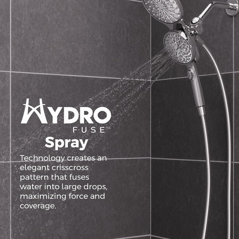 - HYDROFUSE SPRAY MODE – The elegant crisscross pattern creates a randomized water pattern, resulting in larger drops with more, even coverage; The sensation of heavier water flow provides maximum force without using as much water