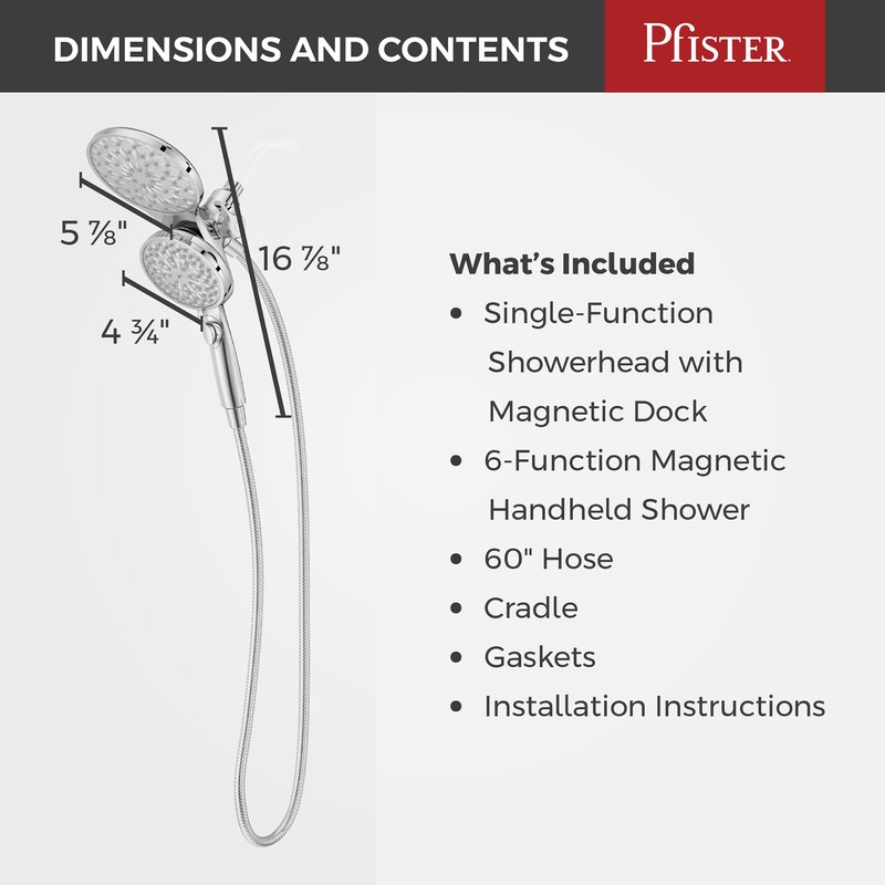 Pfister HydroFuse Shower Head and Handheld Combo, Hose Included, Magnetic Docking, 6-Function, 2.5 GPM, Polished Chrome Finish, 020HFM01CC