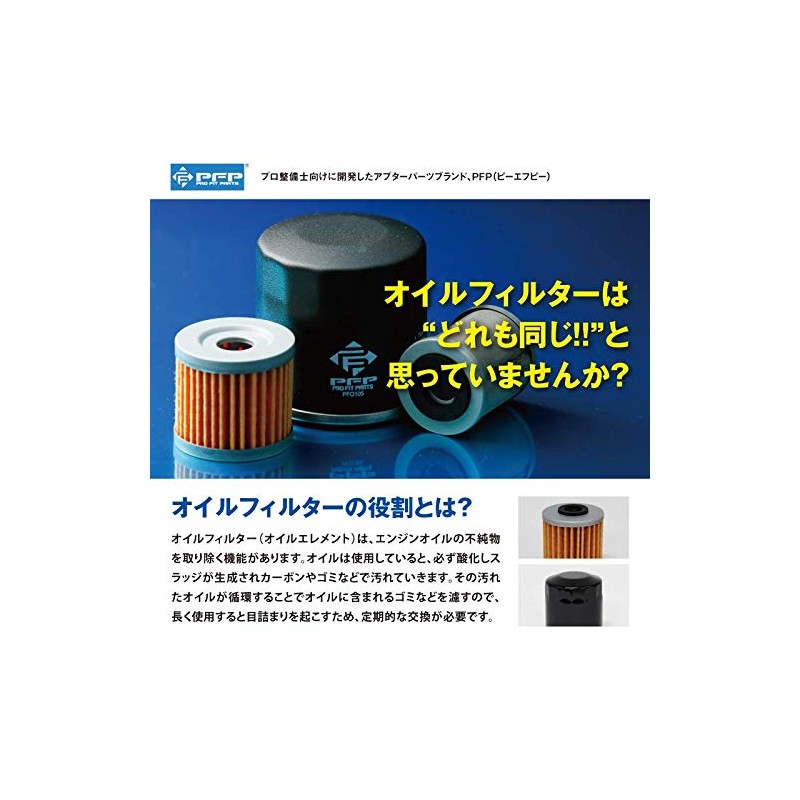 - The PFP oil filter is a spin-on type that can be replaced by the filter case for easy installation. Made in a factory with a proven OEM experience from Japanese vehicle manufacturers. Filtered paper increases surface area by 30% to original ratio Medium fold design improves filter life and filtration performance. In addition, the gasket is made of high quality materials to prevent heat and oil from being affected by the mounting surface of the engine block and the filter to reseal. The anti-drain valve and relief valve are also made for high precision