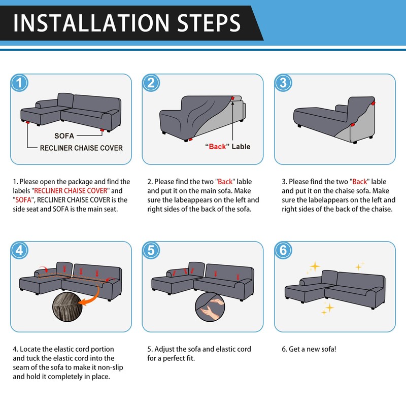 - EASY TO TAKE ON AND OFF: This sectional covers are designed with lables that allow you to easily match them to your 3 seater sofa or 3 seater chaise during installation. Renewing your old sofa is also another home decoration.