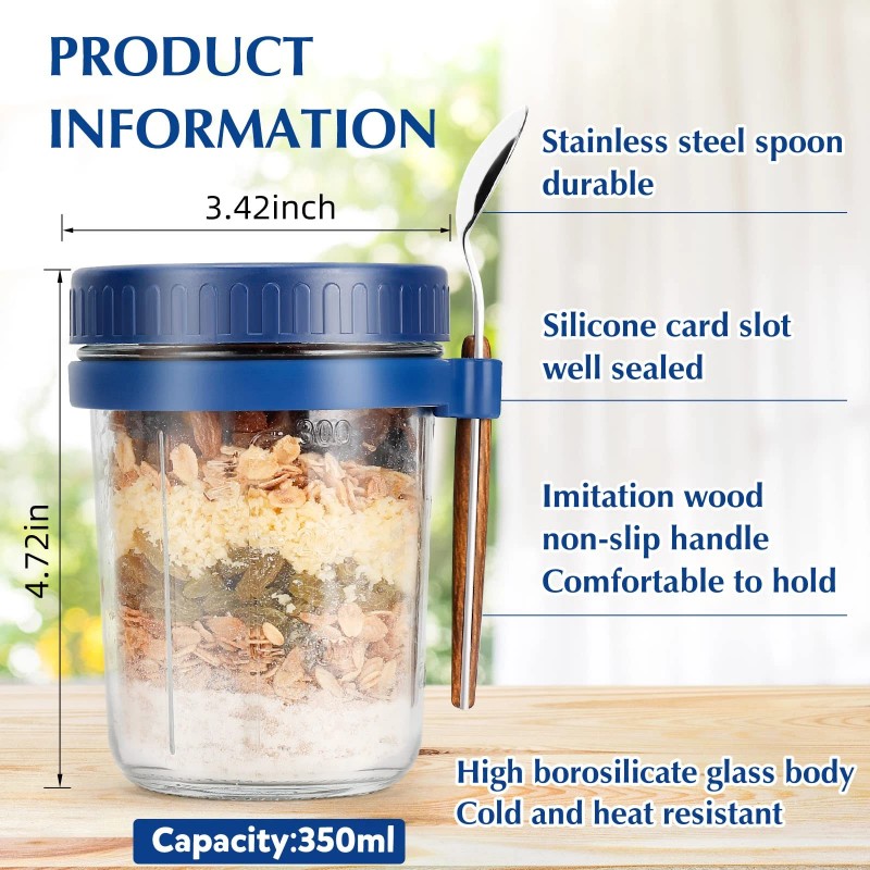 【Various Uses】: Overnight oats containers with lids & spoon is a good choice for dieters to control food intake, ,each of 16oz. Perfect for storing cereal, milk, yogurt, oats, rice, coffee, tea, snacks, nuts, cookies, these overnight oats jars suitable for any office, restaurant, dormitory or family use.