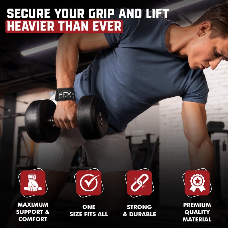 - Non Slip Grip: The PFX Sports lifting straps for weightlifting with hook and loop closure are designed to protect your hands during powerlifting workouts by promoting a comfortable hand alignment to relieve pressure off your wrists. The anti-slip silicone grips ensure a firm grip on the dumbbell or bar, preventing your hand from slipping.