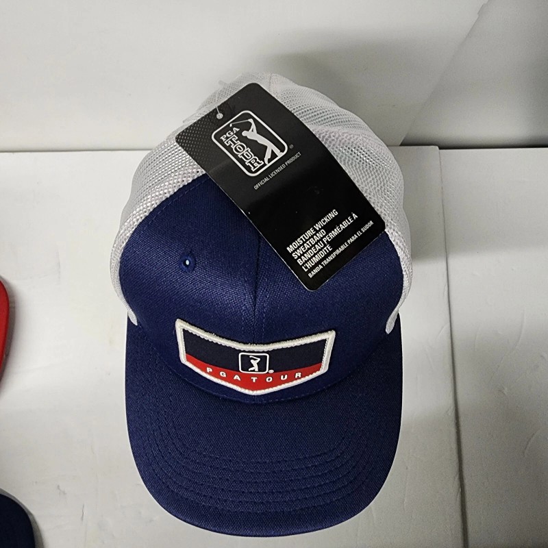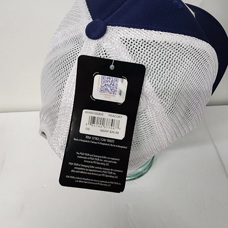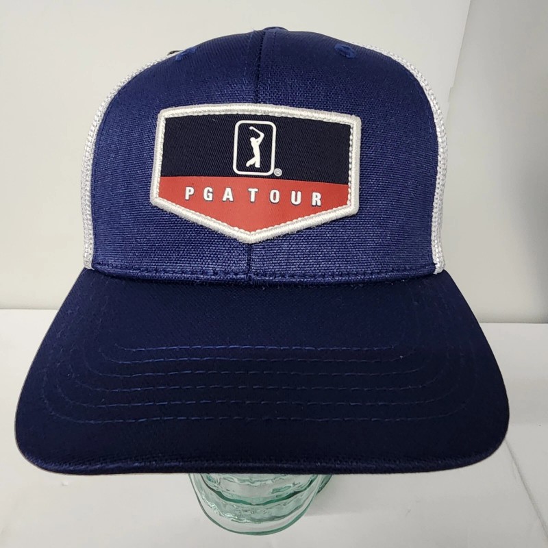 Elevate your golf style with this PGA Tour official licensed product. This men's snapback hat features a blue character with white/navy color accents and a moisture-wicking sweatband. It's made of 100% polyester fabric and has a logo accent on the front. The hat is adjustable, making it perfect for all head sizes. Ideal for casual occasions, this golf hat is perfect for any golf enthusiast looking for a stylish accessory to complete their outfit.