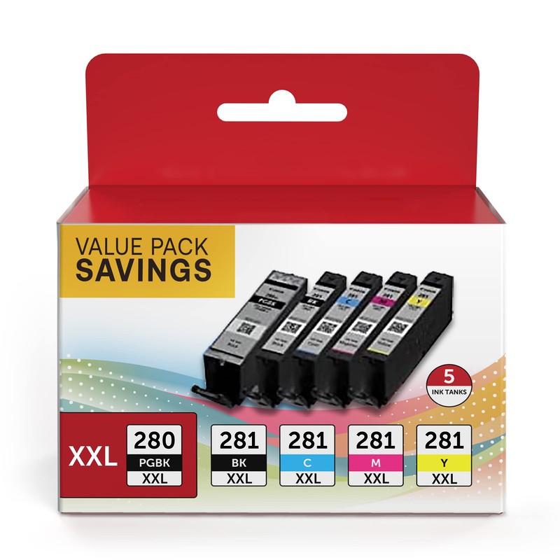 PGI-280 XXL/CLI-281 XXL Ink Cartridge 5 Color Value Pack Replacement for Canon 280 281 Ink Cartridges Compatible with Printer PIXMA TR8520 TR8620 TR7520 TR8600 TS6120 TR8500 TS6220 TS9120