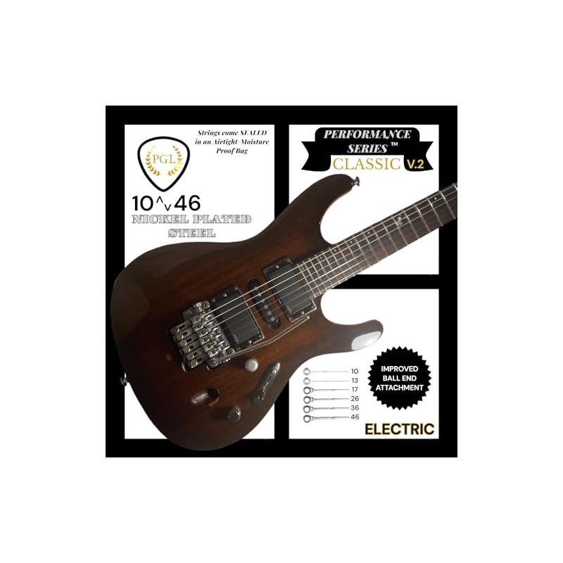 PGL Performance Series Classic Nickel Plated Electric Guitar Strings - 10-46 Gauge Custom Set for Superior Performance Version 2 (IMPROVED Ball End Attachment)